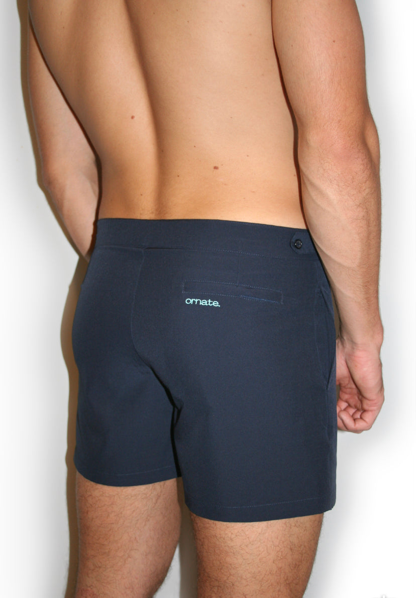 The Audax range is one of the most versatile swim shorts on the market. The Navy Blue compliments all different physiques and pairs perfectly with a wide range of clothing styles. They have been designed to adapt to our customers lifestyles, allowing them to head from the beach, to the restaurant, then to the bar. The shorts are hand made from 95% polyester 5% elastane, offering ultimate comfort whilst providing a soft-feel, durable peice. The zip and button combination and fitted waistband gives a smart, tailored to look to our swim shorts.